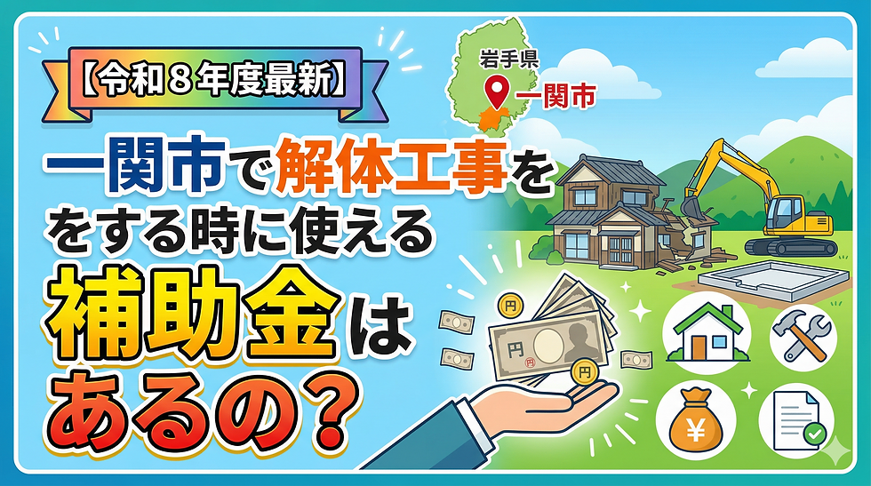 一関市ではこれまで、解体工事費用のローン金利のみ補助する制度がありましたが、令和8年度、やっと一関市でも解体工事費用の補助金が用意されました!